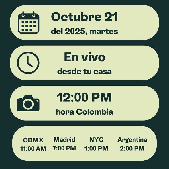 El taller Online: Aumenta tu masa Muscular Después de los 45 años es el martes 21 de octubre a las 12:00 p.m. hora Colombia
